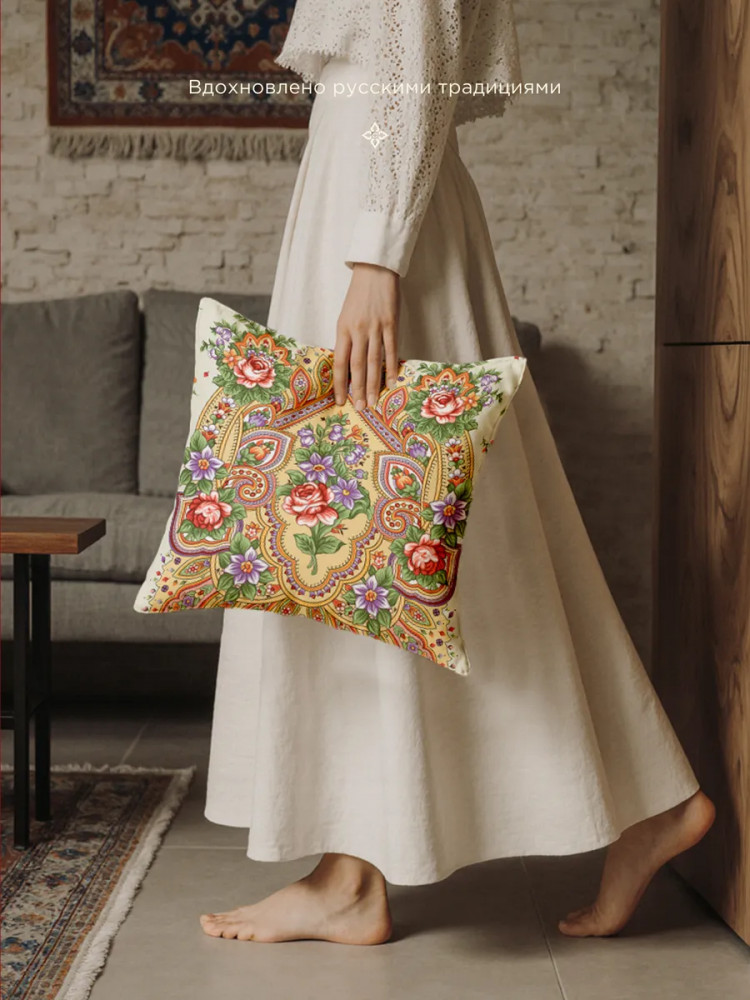 Подушка декоративная габардин «Унисон» 40×40 Павлопосадский — стильный и яркий элемент декора, который добавит в ваш интерьер нотку оригинальности и индивидуальности. Подушка выполнена из габардина — прочной и износостойкой ткани, которая не теряет своих качеств даже после многократных стирок. Благодаря этому, подушка будет служить вам долгое время, сохраняя свою первоначальную яркость и свежесть. Дизайн подушки «Павлопосадский» выполнен в виде яркого и красочного рисунка, который будет радовать глаз и поднимать настроение. Этот рисунок станет отличным акцентом в интерьере и подчеркнет вашу индивидуальность.