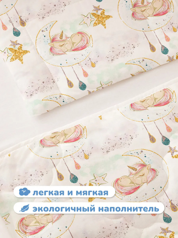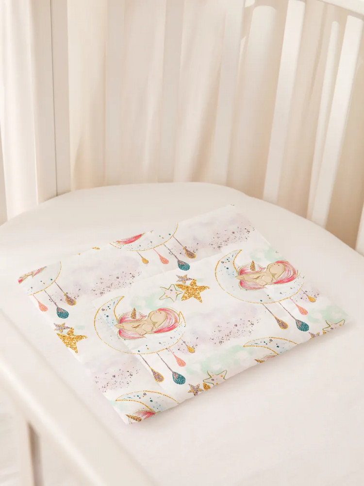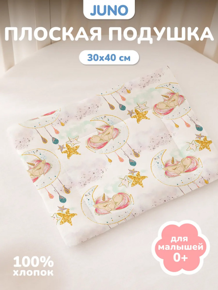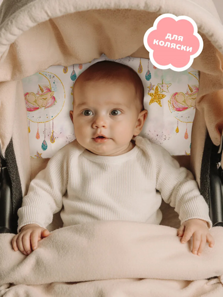 Детская подушка в колыбель идеально подойдет малышам старше одного года. Прямоугольная подушка размером 30×40 см поддерживает шею в правильном положении, учитывая возрастные особенности новорожденного. Она способствует правильному кровоснабжению ребенка в возрасте от годика и старше. Компактную подушку для младенцев можно использовать дома в кроватке размером 120×60 или в люльке, а также на прогулке, положив её в изголовье коляски. Плоская подушка идеальна для девочек ясельного возраста. Розово-голубая подушка со сказочными единорогами в облаках будет красиво смотреться в детской! Добрые волшебные единорожки и звезды позволят малышу видеть самые сладкие сны и приятные фантазии. Подушечка в пастельных тонах подарит ему спокойствие и идеально вольется в любой интерьер.