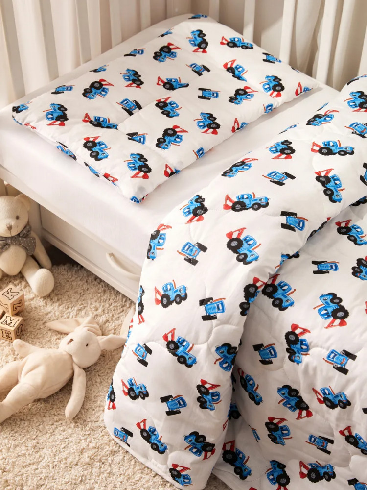 Juno Подушка плоская для новорожденных «Синий трактор»новинка