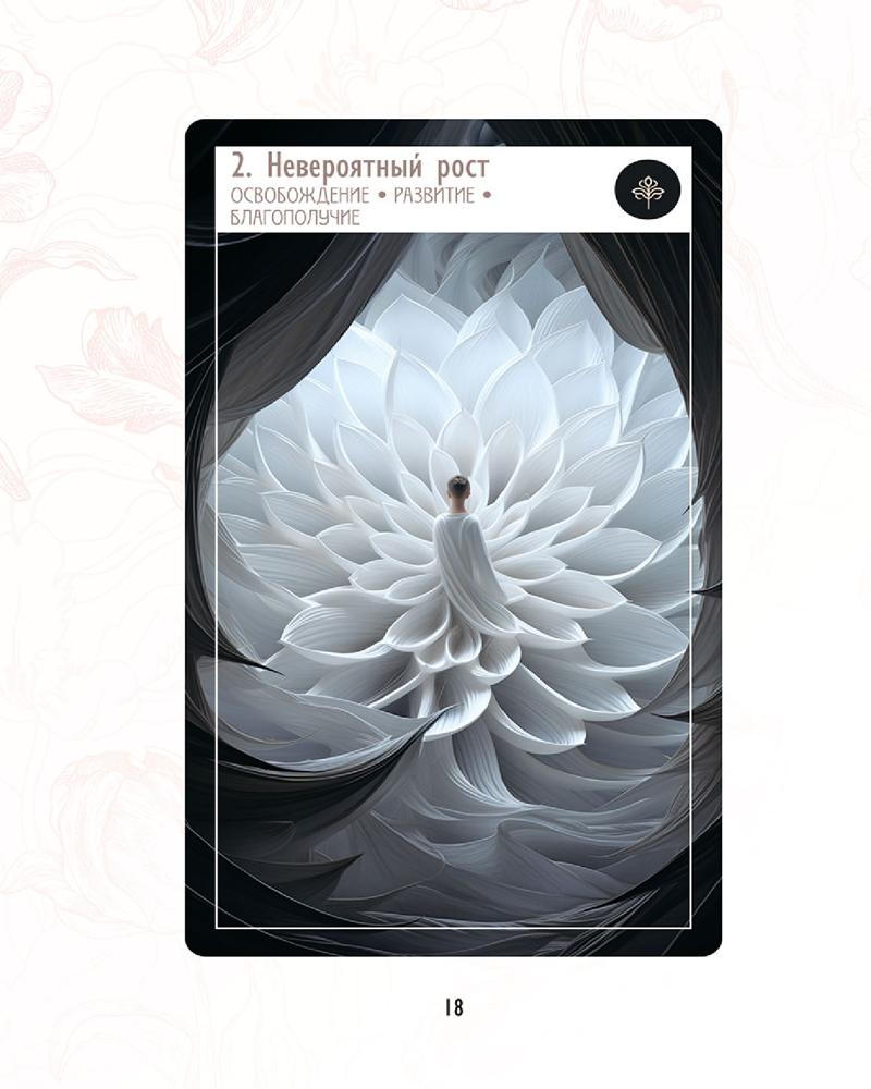 💳 Оплатить за товар можно при получении 🇰🇿 Есть бесплатная доставка по Казахстану от 1 дня 🎁 Копите бонусы с каждой покупки Этот набор из 40 великолепно иллюстрированных карт и подробной инструкции приглашает читателя в захватывающее путешествие по безмятежным цветочным просторам и собственной внутренней вселенной. Каждая карта пробуждает новые чувства, наделяет свободой и приносит удивительные открытия. Окунитесь же в мир образов, символов и слов, чтобы ощутить подлинное вдохновение и осветить свой жизненный путь. |
