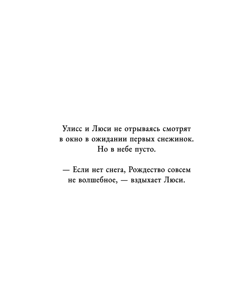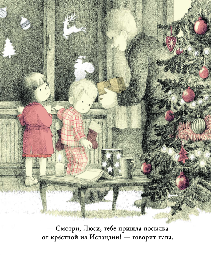 В канун Рождества маленькая Люси и её брат Улисс грустят: за окном — ни единого снежного облака. «Если нет снега, Рождество совсем не волшебное», — вздыхает девочка. Всё меняется, когда дети получают посылку из Исландии. Внутри — снежный шар-игрушка. Перед сном Люси долго разглядывает его и вертит в руках. А ночью случается чудо: прямо в комнате начинают кружиться настоящие снежинки! |