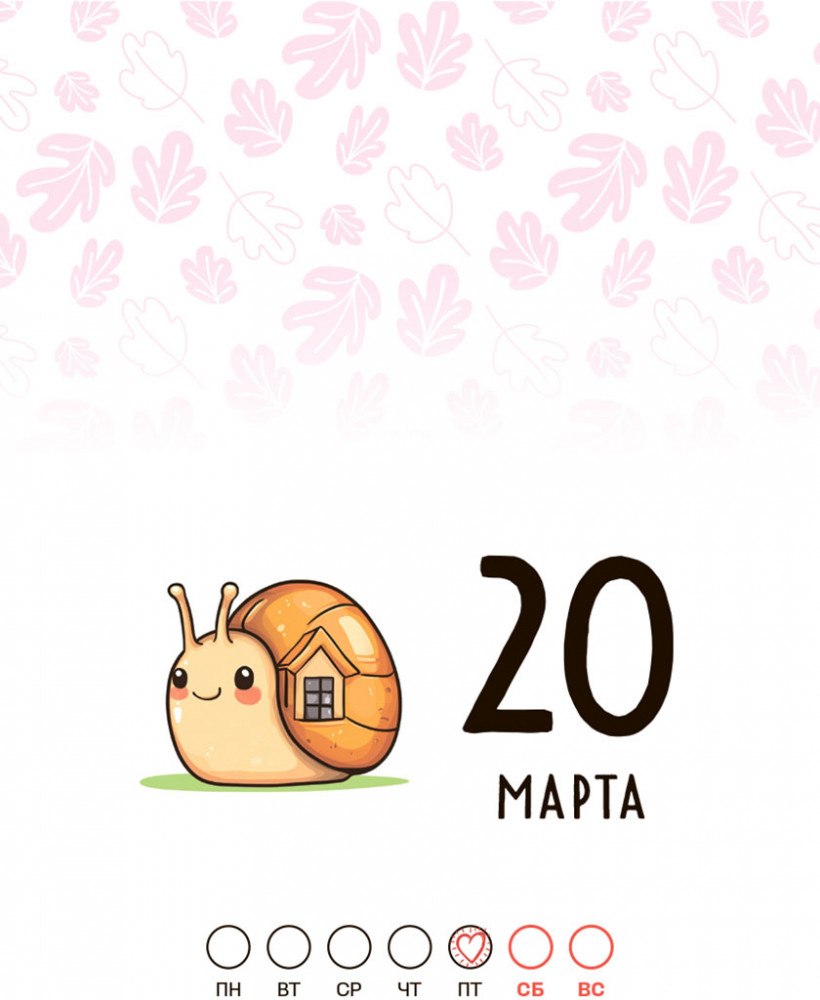 💳 Оплатить за товар можно при получении 🇰🇿 Есть бесплатная доставка по Казахстану 🎁 Копите бонусы с каждой покупки Хорошее настроение каждый день! Этот настольный перекидной мини-календарь поразит вас своей компактностью — ведь он умещается на ладони! Фон страниц меняется в зависимости от времени года. Внутри — 365 милых рисунков, которые с самого утра заряжают теплом и позитивом. |