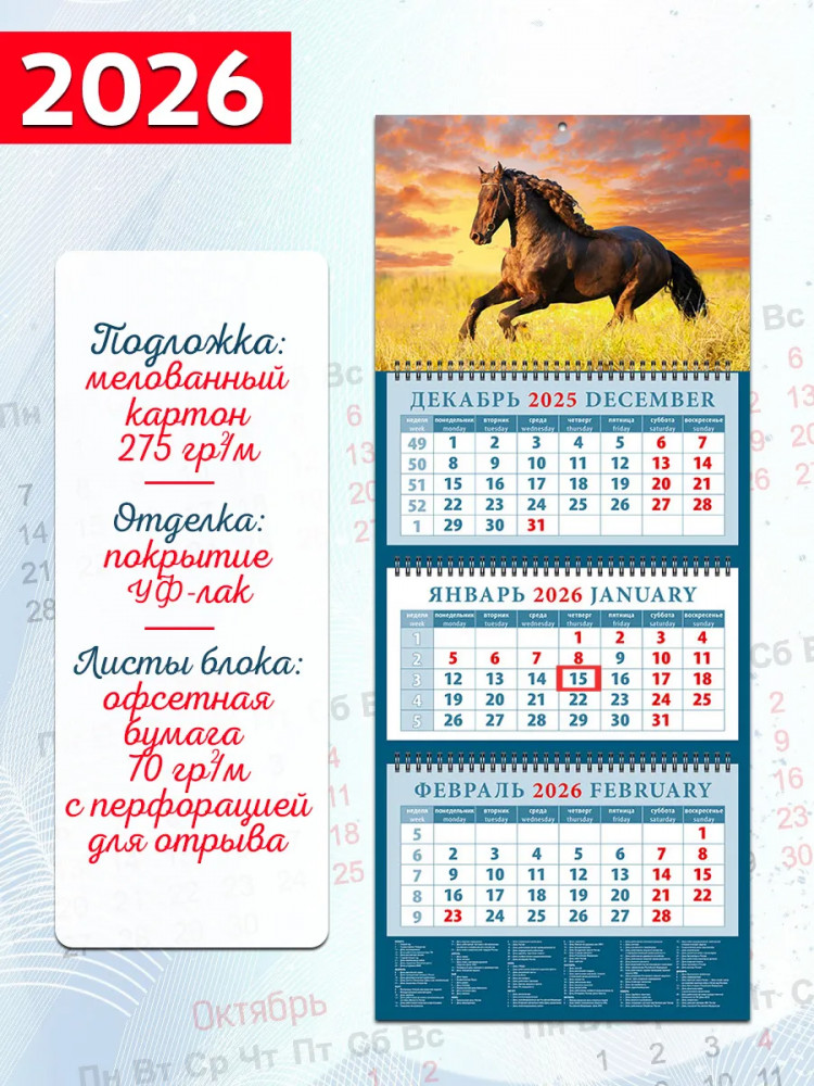 Подарите себе уверенность и порядок в планировании на весь год! Этот календарь станет вашим надёжным помощником, помогая легко управлять временем и не упускать важные моменты. Элегантное и практичное решение для тех, кто ценит организованность и хочет сделать каждый день 2026 года осмысленным и продуктивным.
