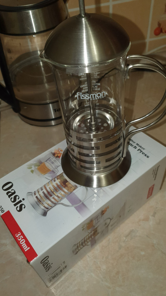 Fissman Заварочный чайник с поршнем Oasis (350 мл)В данный момент этот товар отсутствует в продаже. Возможно, у нас найдется аналогичный или похожий товар здесь. Серия: OASIS Заварочный чайник с поршнем Oasis (350 мл) - Френч - пресс с хромированной ручкой, изготовлен из нержавеющей стали 18/10, последние несколько лет посуда из нержавеющей стали 18/10. Он представляет собой стеклянный цилиндр в хромированной или пластиковой оправе, в который вставляется поршень, cостоит из стержня, нижняя часть которого соединена с сетчатым фильтром, плотно прилегающим к стенкам чайника, а верхняя проходит через крышку и, обычно, завершается красивой ручкой. |