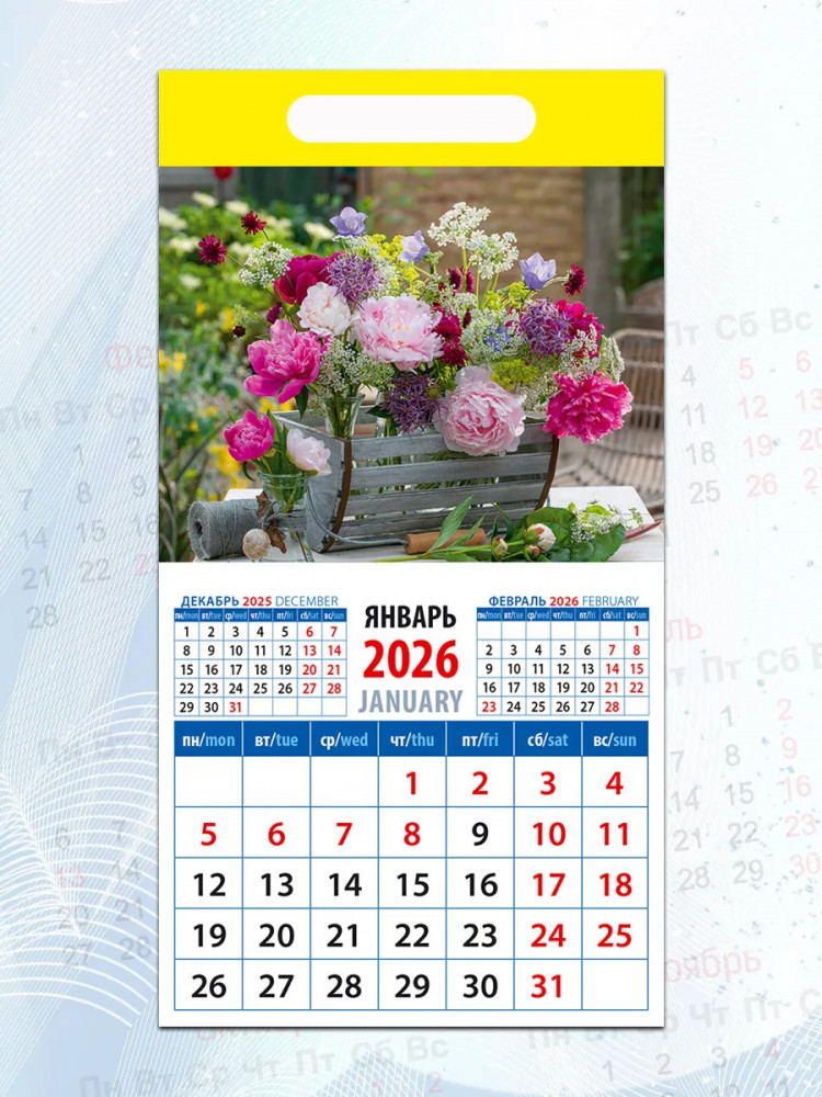 Календарь на магните на 2026 год «Летний букет»В данный момент этот товар отсутствует в продаже. Возможно, у нас найдется аналогичный или похожий товар здесь. Календарь на магните на 2026 год — это компактный и практичный помощник, который легко размещается на холодильнике или любой металлической поверхности, позволяя всегда держать важные даты перед глазами. Его яркое оформление и удобный формат сочетают функциональность планирования и элемент декора, органично вписываясь в интерьер кухни или офиса. |
