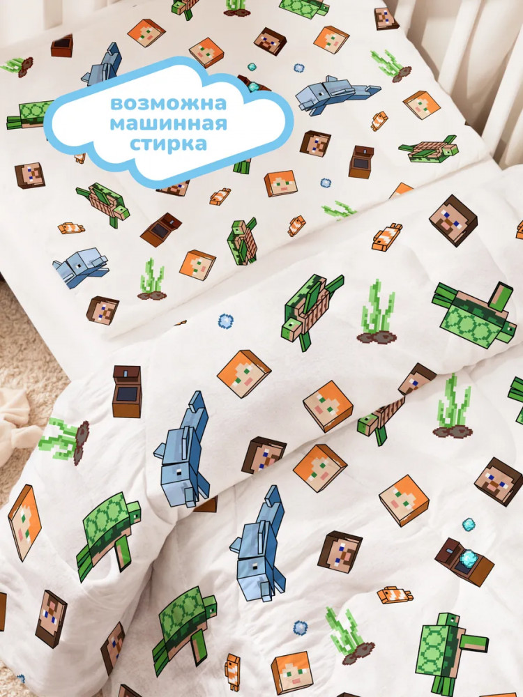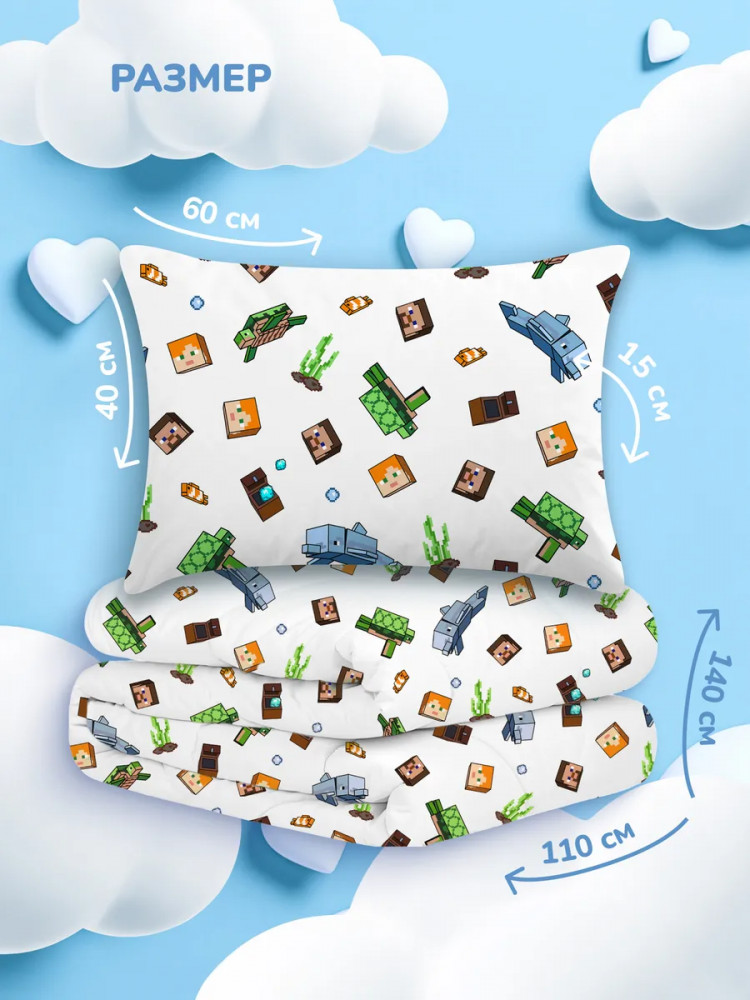 Juno Комплект детский из одеяла и подушки «Подводный майнкрафт»