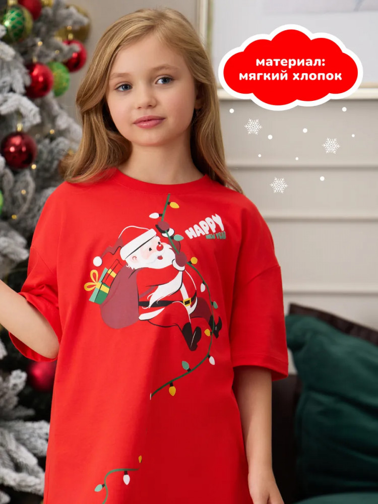 Мы подготовили новые яркие пижамы в стиле фэмили лук. У нас можно найти пижамы с одинаковыми принтами. Давно хотели устроить семейную фотосессию? Самое время! Трикотажная пижама ребенку из серии фэмили лук представлена в размерах 92-158: она подойдет как детям, так и для подросткового домашнего гардероба. Детская пижама унисекс состоит из красной футболки и зеленых штанов с принтом Санта Клаус/Дед Мороз. Она подойдет как для мальчика, так и для девочки. Манжеты и пояс на резинке наделяют пижамный комплект удобной посадкой, делая новогоднюю пижаму лучшим вариантом детской трендовой одежды для дома.