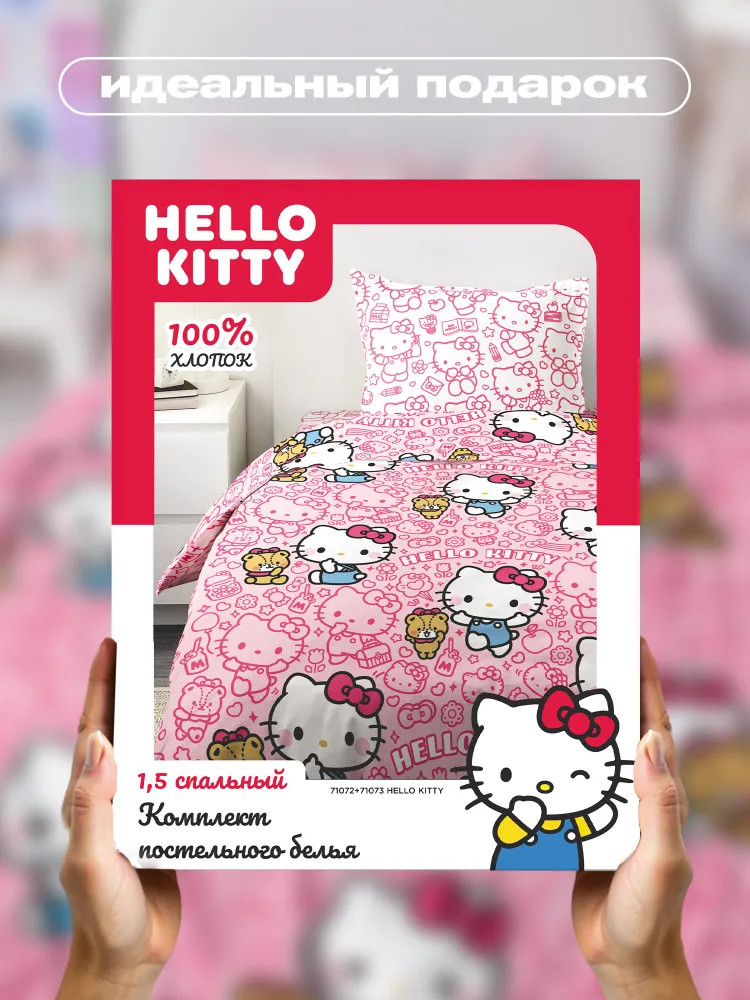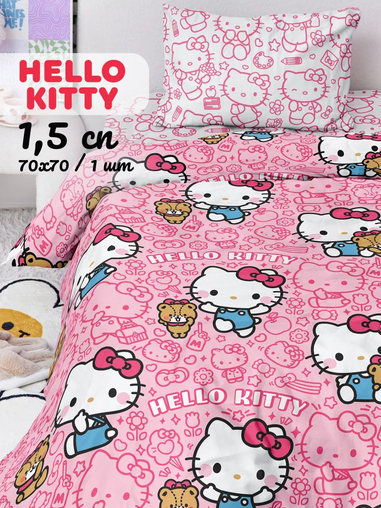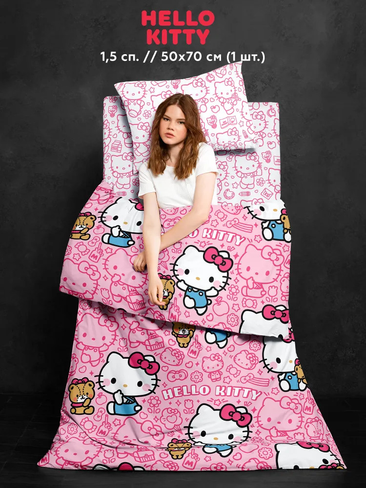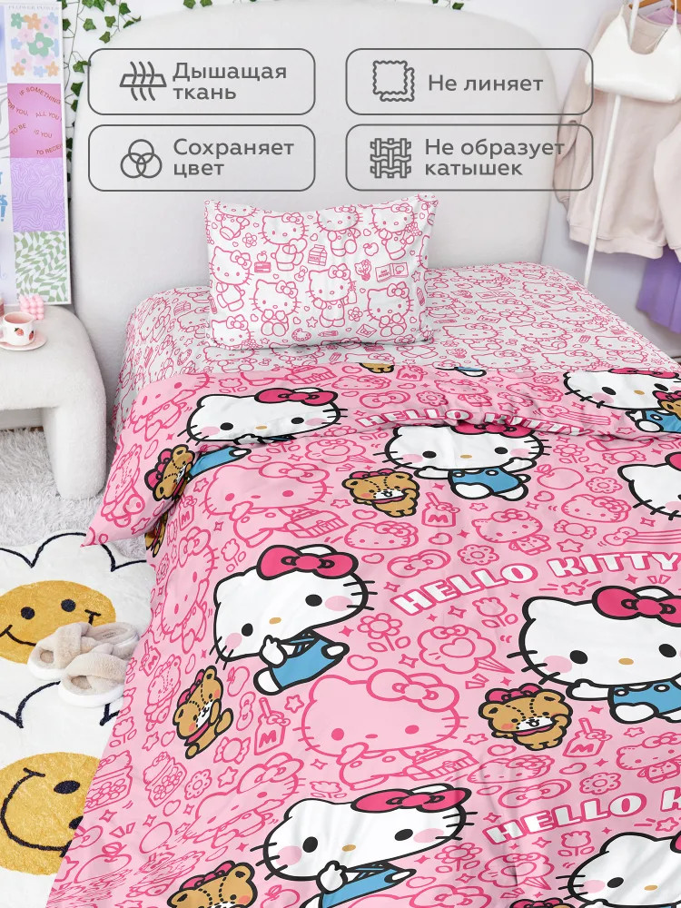 Хочешь жить в уютной спальне и наслаждаться каждым днем? У Crazy Getup есть оригинальные комплекты хлопкового постельного белья на одноместную кровать. У нас найдется лучшее постельное белье! Бело-розовый комплект с Hello Kitty — источник милоты и уюта! Милашка Хэллоу Китти добавит в твою жизнь радости и позитива. Ярко-розовый пододеяльник с любимой героиней и подружкой Куроми/Kuromi идеально сочетается с белоснежными наволочкой и простынью. Этот очаровательный КПБ подарит тебе самые добрые сны.