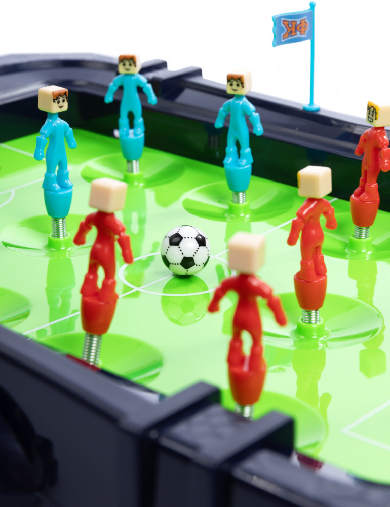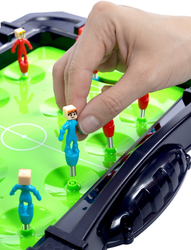 Соберите поле (схема расположена на нижней части коробки). Игроки одновременно пытаются ударить по мячу, приводя в движение своих футболистов — щелчком пальцев по фигуркам на пружинках, или пользуясь рычагами вратарей. Цель — направить мяч в ворота соперника. Забитый гол засчитывается, и мяч снова ставится в центр стола, а затем подаётся каким-либо футболистом. Матч продолжается до победы — пока один из игроков не наберет нужное количество голов или не истечет время. Настольная игра «Футбол» — идеальный способ провести время с друзьями и семьей, наполнив вечер смехом, азартом и здоровым духом соперничества. Настольный футбол развивает координацию движений, улучшает концентрацию внимания и учит стратегическому планированию.