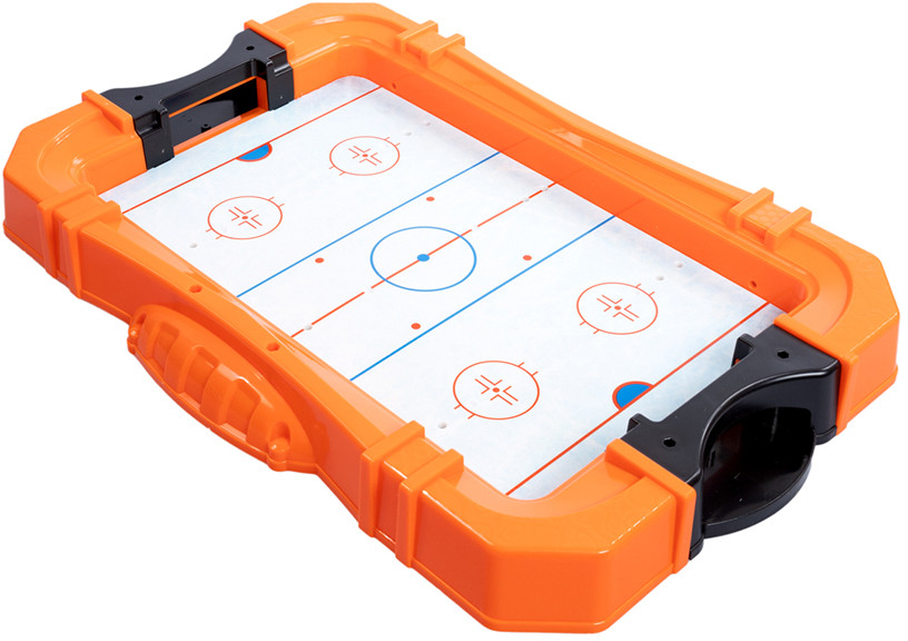 Соберите поле (схема расположена на нижней части коробки). По команде «Старт»! оба участника начинают игру. Игроки двигают свои биты, чтобы отбивать шайбу и пытаться забить её в ворота соперника. Когда шайба попадает в ворота, соперник получает 1 балл. Счет фиксируется на рамках ворот.