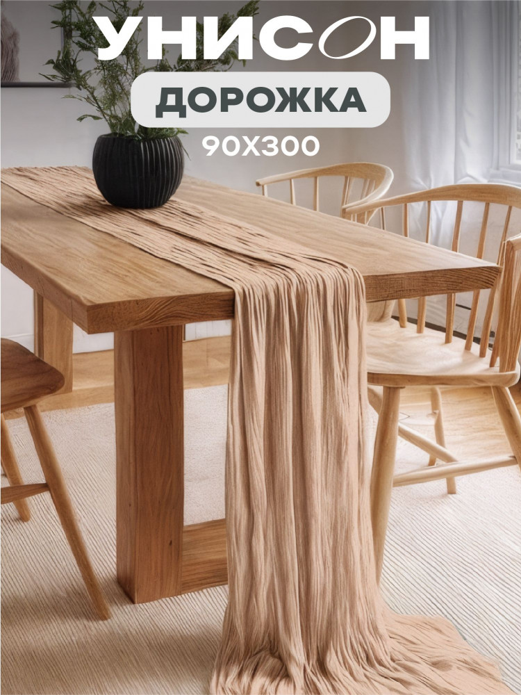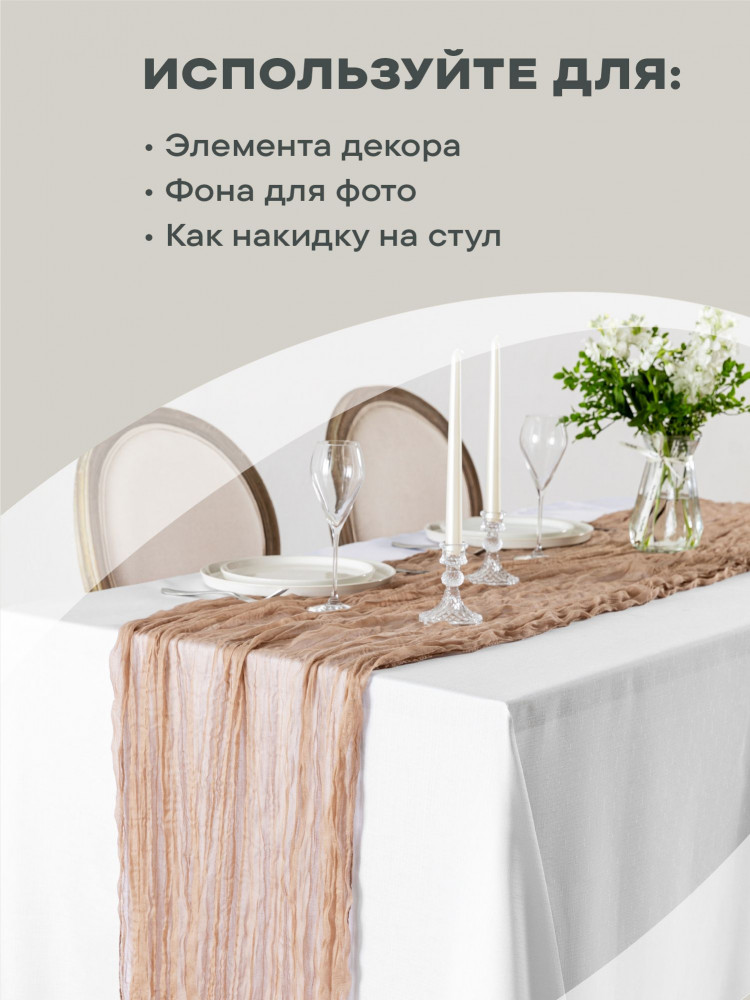 Красивый декор для стола создает особую атмосферу во время трапезы. Полупрозрачная скатерть-дорожка шифоновая (90×300 см) вдохнет в комнату легкость и станет настоящим украшением вашего праздника. Однотонная дорожка — интересный элемент настольного декора: она изысканно и элегантно смотрится на любой поверхности, не создавая визуального шума. Сделанная из прочной и износостойкой ткани (100% полиэстер) дорожка долго прослужит у вас дома. Почти что невесомая скатерть-дорожка идеально впишется в любой интерьер благодаря нейтральному пастельному оттенку. Широкий раннер открывает возможности для разных видов сервировки. Его можно расположить по центру, создав интересный акцент, или использовать в сочетании с обычной скатертью. Она совершенно не занимает лишнего места и легко адаптируется под размеры вашего кухонного стола.