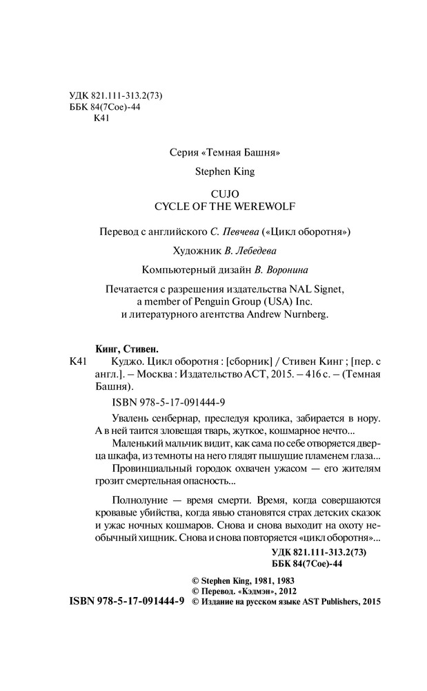 Роман *Куджо* превзошел мои ожидания. Одна из любимых моих книг. Качество издания тоже порадовало, хотя есть пара грамматических ошибок. Спасибо!