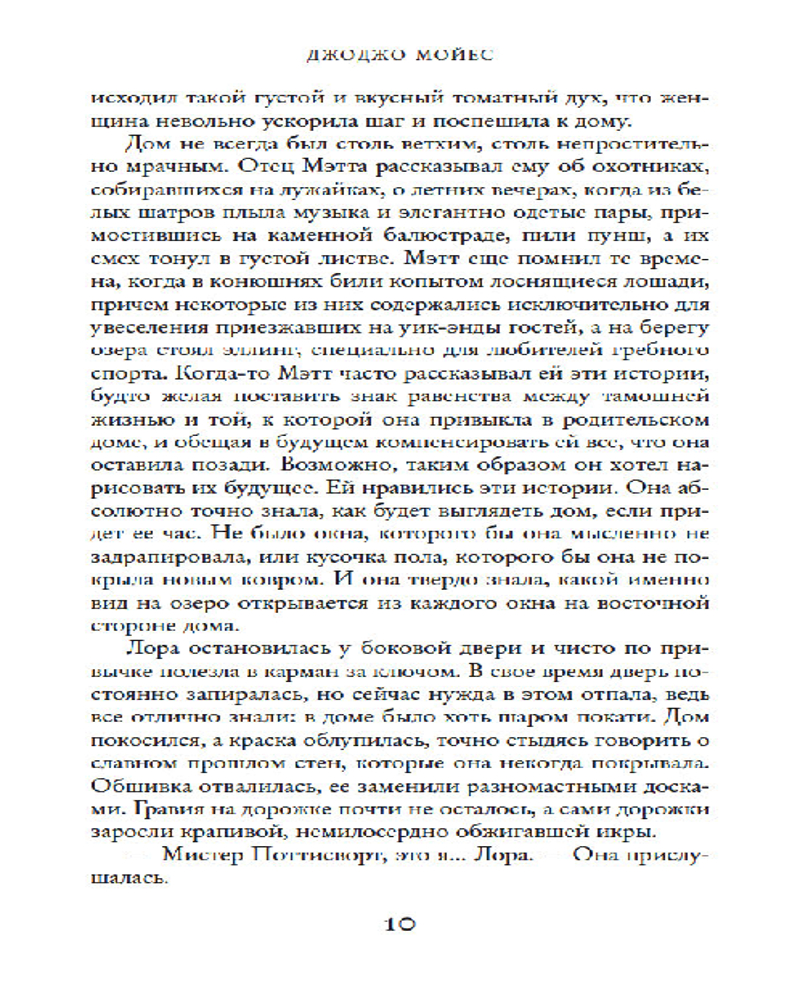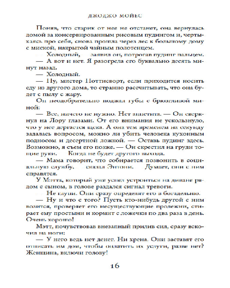 Читала в интернете. Мне стиль Мойеса так нравится, будто со своим умом снимаешь фильм когда читаешь. Не как "До встречи с тобой", но всё же что-то поучительное есть... Советую!