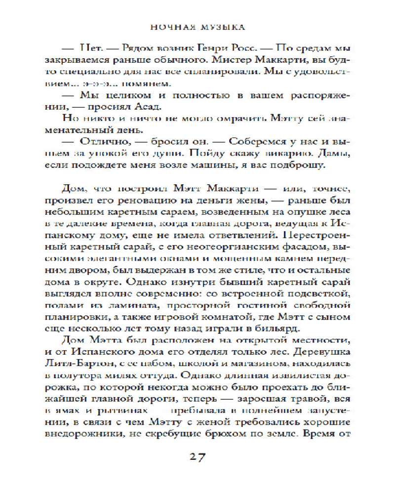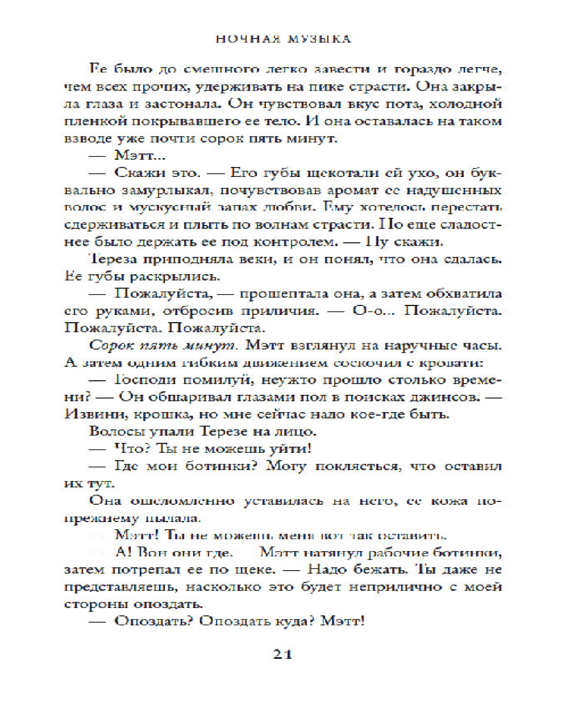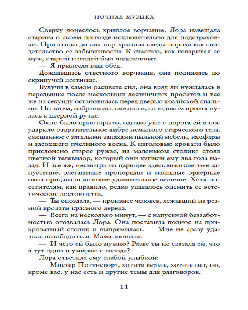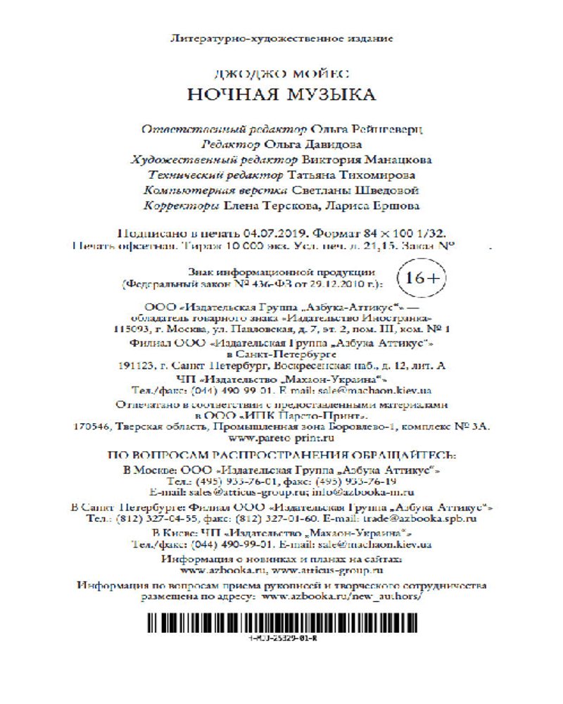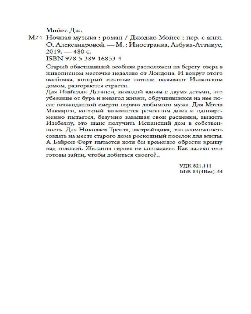 Ночная музыкаВ данный момент этот товар отсутствует в продаже. Возможно, у нас найдется аналогичный или похожий товар здесь. Серия: Мойес Джоджо (покет) Старый обветшавший особняк расположен на берегу озера в живописном местечке недалеко от Лондона. Здесь, в особняке, который местные жители называют Испанским домом, разгорались страсти. Для Изабеллы Деланси, молодой вдовы с двумя детьми, — это убежище от бурь и невзгод жизни, обрушившихся на нее после неожиданной смерти горячо любимого мужа. Для Мэтта Маккарти, который занимается ремонтом дома и одновременно пытается, безумно завышая свои расценки, выжить Изабеллу, — это шанс получить Испанский дом в собственность. Для Николаса Трента, застройщика, — это возможность создать на месте старого дома роскошный поселок для элиты. А Байрон Ферт пытается хотя бы временно обрести крышу над головой. Желания героев не совпадают. Как далеко они готовы зайти, чтобы добиться своего? |