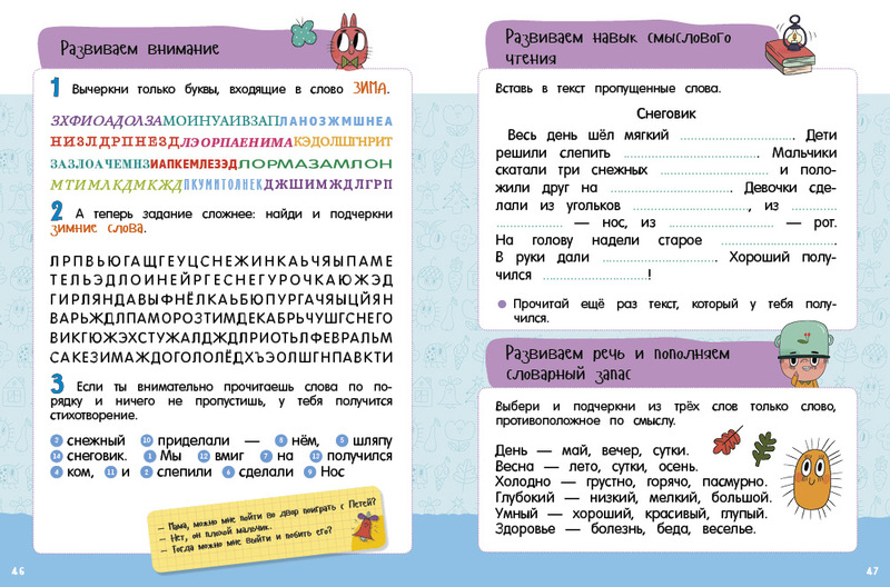 Не устаю хвалить книги этой серии, мы занимались по ней в прошлом году, сейчас такая же за 2 класс, эту купили для первоклашки друзей, все очень содержательно и интересно, полезная книжка, развивающая мозги.