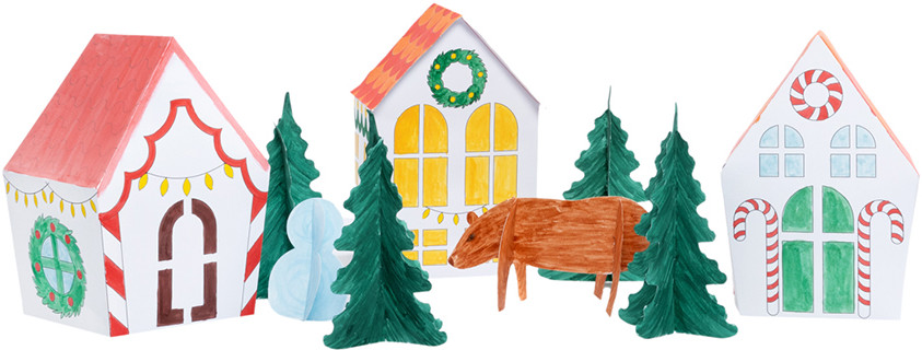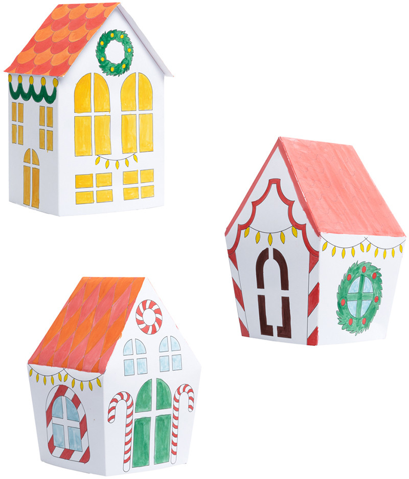 • домики из картона — 3 шт. (9×9х16 см — 2 шт., 10,5×7,5×16,5 см — 1 шт.);