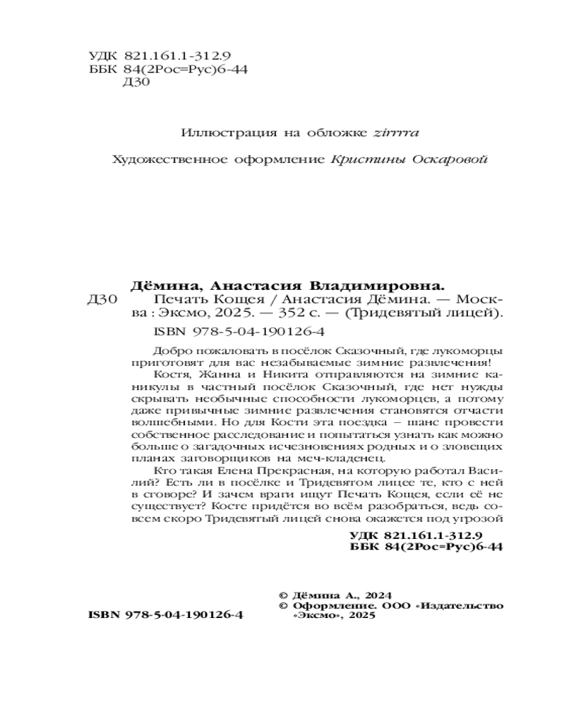 💳 Оплатить за товар можно при получении 🇰🇿 Есть бесплатная доставка по Казахстану от 1 дня 🎁 Копите бонусы с каждой покупки Серия: Тридевятый лицей Продолжение трилогии «Тридевятый лицей» Анастасии Дёминой! Добро пожаловать в посёлок Сказочный, где лукоморцы приготовят для вас незабываемые зимние развлечения! Подростковое фэнтези со славянским колоритом в духе «Последнего богатыря». В этой части вам придётся собирать улики вместе с Костей, чтобы узнать, что случилось на самом деле. |