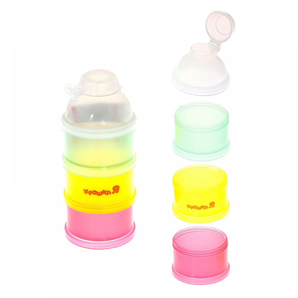 Контейнер порционный представляет собой бутылочку с откидывающейся крышкой, которая предназначена для хранения детских сухих смесей. Он довольно удобный и компактный, состоит из 3-х секций, которые ставятся друг на друга. Его можно брать с собой на природу, в гости, в кафе. С порционным контейнером для детского питания Ваш ребенок всегда будет сытый. Он имеет узкое горлышко, из которого удобно высыпать смесь в бутылочку, не просыпав её мимо.