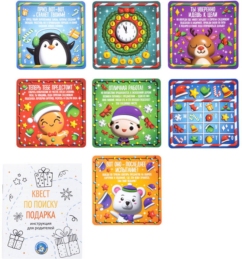 💳 Оплатить за товар можно при получении 🇰🇿 Есть бесплатная доставка по Казахстану 🎁 Копите бонусы с каждой покупки Игра-Квест «В поисках спрятанного подарка»- это волшебное приключение с загадками и подсказками! Пройди 7 увлекательных заданий, чтобы найти тайник с подарком. |
