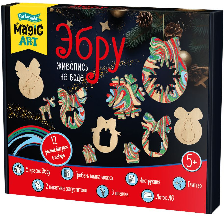 Подарите ребенку волшебство создания неповторимых ёлочных украшений с помощью древней техники рисования на воде! Набор «Эбру» Ёлочные игрушки, превратит подготовку к праздникам в увлекательное творчество, где каждый сможет почувствовать себя настоящим художником.