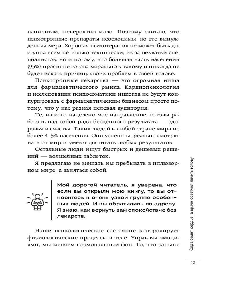 Серия: Ментально. Детально о психическом здоровье Если врачи разводят руками, говоря, что с сердцем все в порядке, но боль и страх не проходят — эта книга для вас. Она объясняет, почему наше тело реагирует на стресс болезнями, и дает четкий план, как разорвать этот порочный круг. Книга от опытного врача-кардиолога и медицинского клинического психолога Анны Кореневич поможет вам узнать, почему хронический стресс — это скрытый и при этом опаснейший враг сердечно-сосудистой системы и почему справиться с ним можно лишь работая с собственным подсознанием.