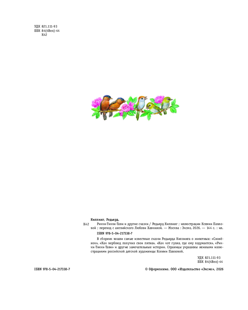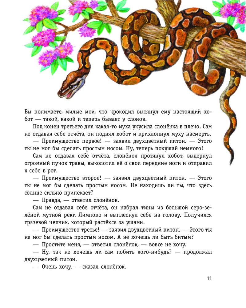 Серия: Золотая полка мировой литературы Перед вами сборник сказок английского писателя, автора всемирно известных рассказов о Маугли — Редьярда Киплинга. В эту книгу вошли любимые многими поколениями 11 историй о животных. Здесь вы встретите и отважного мангуста Рикки-Тикки-Тави, который не боится вступить в бой с коварной коброй; и любопытного слонёнка с его тысячей неуёмных вопросов об этом мире; и первого кота, ставшего домашним исключительно по своей воле! А также на страницах сборника благодаря цветным выразительным иллюстрациям Ксении Павловой оживают даже первые броненосцы и другие удивительные животные. |