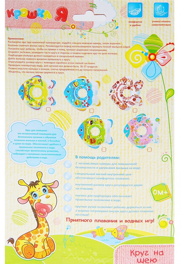 Крошка Я Круг на шею в форме рыбки «Мур-мяу» от 0 мес, двухкамерный, с погремушкамиВ данный момент этот товар отсутствует в продаже. Возможно, у нас найдется аналогичный или похожий товар здесь. Круг на шею в форме рыбки с погремушками внутри предназначен для купания малышей с рождения в домашних условиях или на открытом воздухе на глубине не более 1 метра. Одетый на шею ребенка круг не доставляет малышу никакого дискомфорта, ввиду применения технологии "внутреннего шва", который делает края мягкими на ощупь. На внутренней стороне круга имеется вставка для подбородка ребенка, которая надежно фиксирует его положение и препятствует соскальзыванию. А благодаря двум раздельным контурам, надувающимся отдельно, создается дополнительная безопасность во время купания ребенка. |