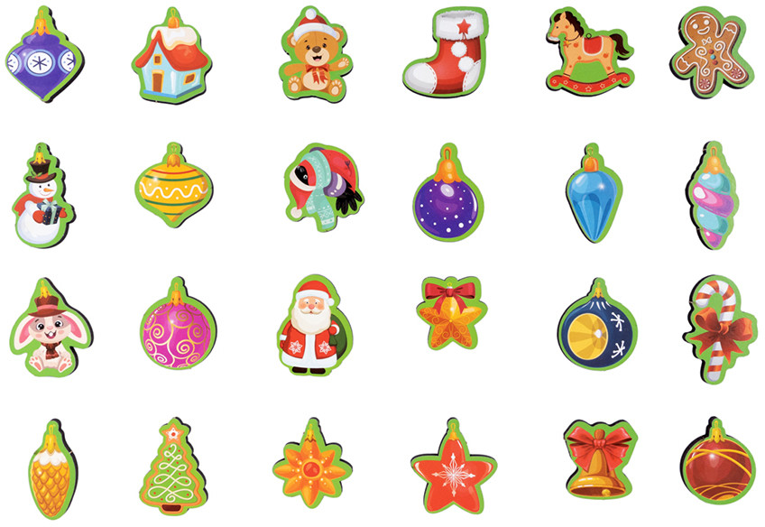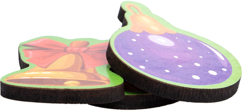 • елочные украшения из древесного материала (3,5-4,5 см высотой) — 24 шт.;