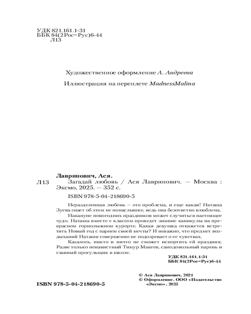 💳 Оплатить за товар можно при получении 🇰🇿 Есть бесплатная доставка по Казахстану 🎁 Копите бонусы с каждой покупки Серия: Young Adult. Инстахит. Романтика (новое оформление) Неразделенная любовь — это проблема, и еще какая! Наташа Зуева знает об этом не понаслышке, ведь она безответно влюблена. Накануне новогодних праздников может случиться настоящее чудо. Наташа вместе с классом проведет зимние каникулы на прекрасном горнолыжном курорте. Какая девушка откажется встретить Новый год с парнем своей мечты? И неважно, что предмет воздыханий Наташи совершенно не подозревает о ее чувствах. Казалось, никто и ничто не сможет испортить ей праздник. Разве только ненавистный Тимур Макеев, самодовольный парень и главный прогульщик в школе. |