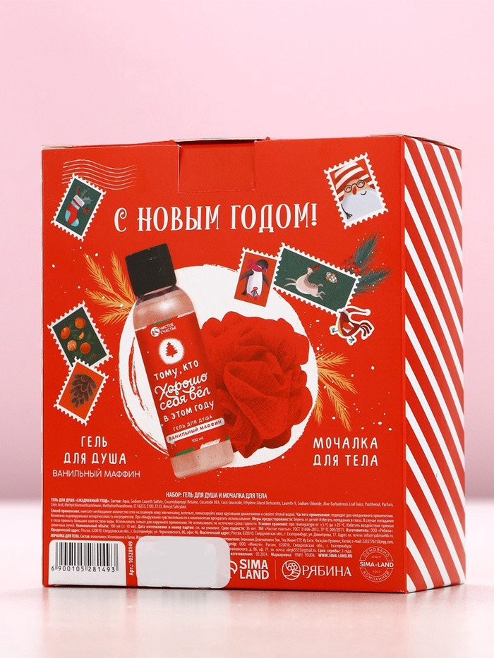 Новогодний подарочный набор косметики «Счастливого праздника» — идеальный выбор для создания праздничного настроения и заботы о себе или близких! В набор входит ароматный гель для душа 100 мл, который мягко очищает и увлажняет кожу, а также мочалка для тела, обеспечивающая комфортный и приятный душевой ритуал.