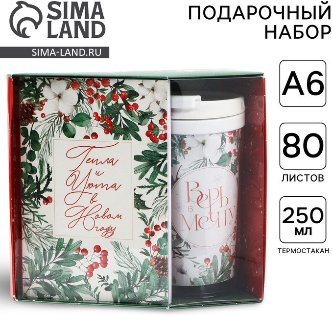 Ежедневник помогает планировать день, записывать важные мысли и ставить цели на Новый год. Компактный формат А6 удобен для сумки или рюкзака, а 80 листов обеспечивают достаточно места для заметок. Термостакан 250 мл сохраняет напитки горячими или холодными, а стильный дизайн с надписью «Мечтай в Новом году» создаёт праздничное настроение и добавляет вдохновения каждому дню.