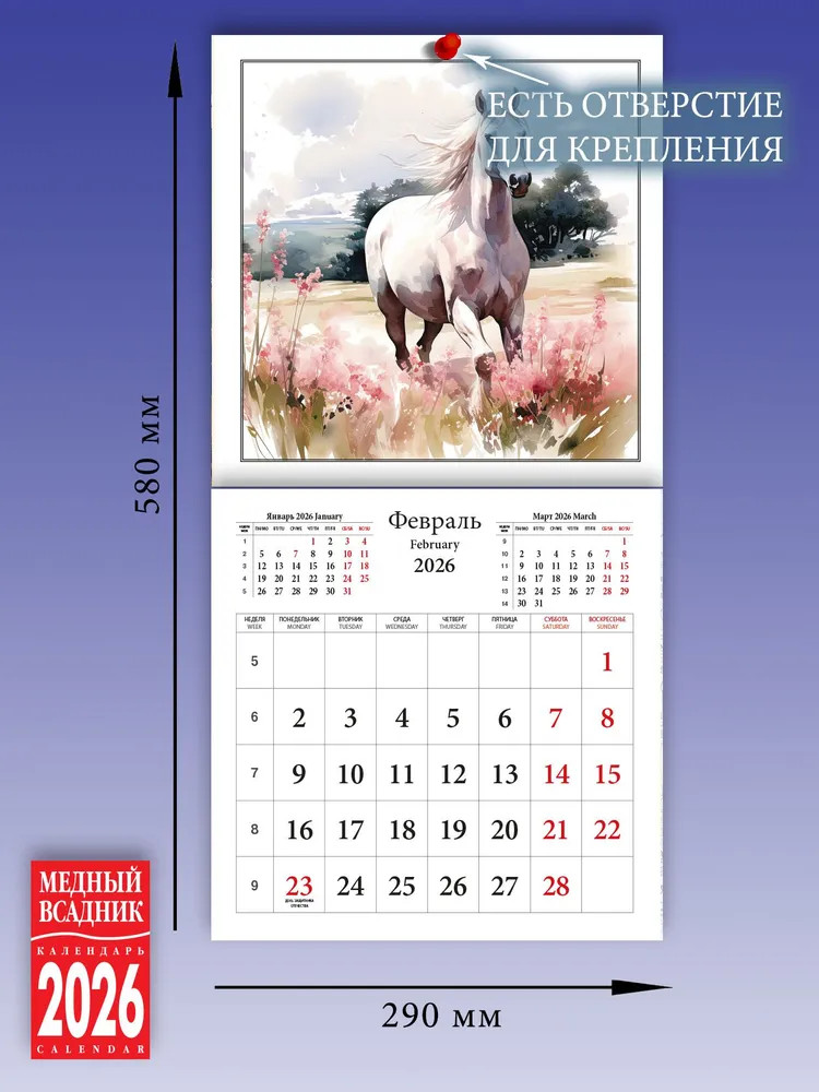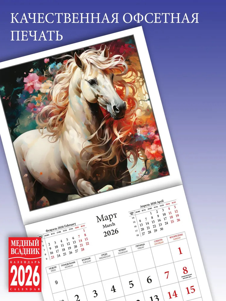 Календарь настенный на 2026 год «Год Лошади»В данный момент этот товар отсутствует в продаже. Возможно, у нас найдется аналогичный или похожий товар здесь. Серия: Календари 2026 Представляем вашему вниманию уникальный настенный календарь на 2026 год! Этот календарь — это не просто инструмент для планирования своего дня, но и настоящее произведение искусства. Он украшен изображением лошади, которая символизирует силу, скорость и мощь. Этот календарь создан брендом Медный всадник, который известен своим высоким качеством продукции. Он легко прикрепляется к стене с помощью скрепки, что делает его удобным для использования в любом месте вашего дома или офиса. |