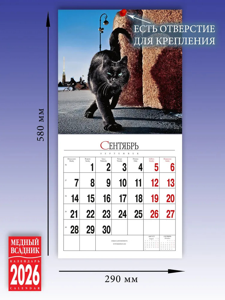 Календарь настенный на 2026 год «Кошки Санкт-Петербурга»+17 красочный классный подарочный