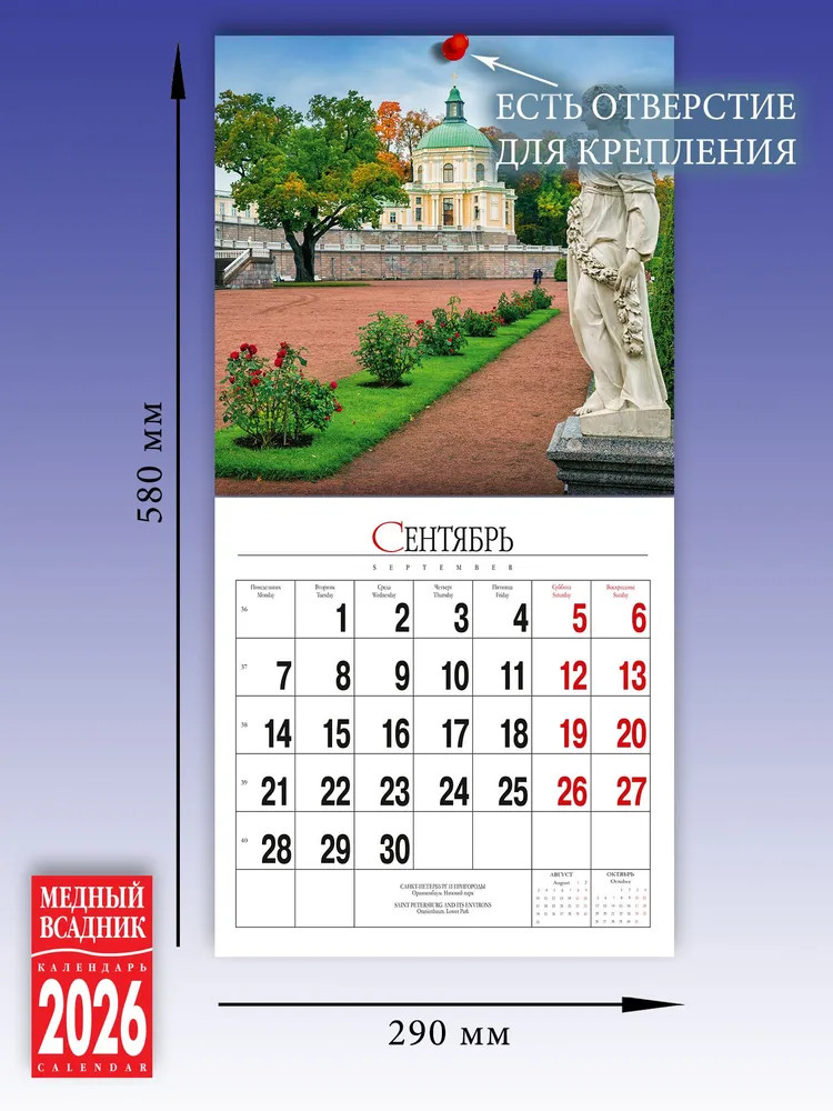 💳 Оплатить за товар можно при получении 🇰🇿 Есть бесплатная доставка по Казахстану от 1 дня 🎁 Копите бонусы с каждой покупки Серия: Календари 2026 Настенный календарь «Санкт-Петербург и пригороды» на 2026 год порадует прекрасными видами города в уникальной съемке его лучших фотографов и станет отличным сувениром для гостей Северной столицы. Этот календарь — свидетельство высоко профессионализма представленной в нем фотосъемки и ее полиграфического воспроизведения. «Медный Всадник» ручается за качество своей продукции. Корпоративное кредо компании — соответствие уровня печати и материалов последним современным требованиям! |