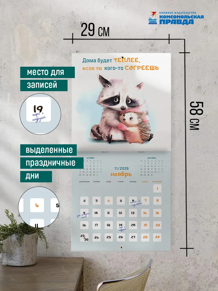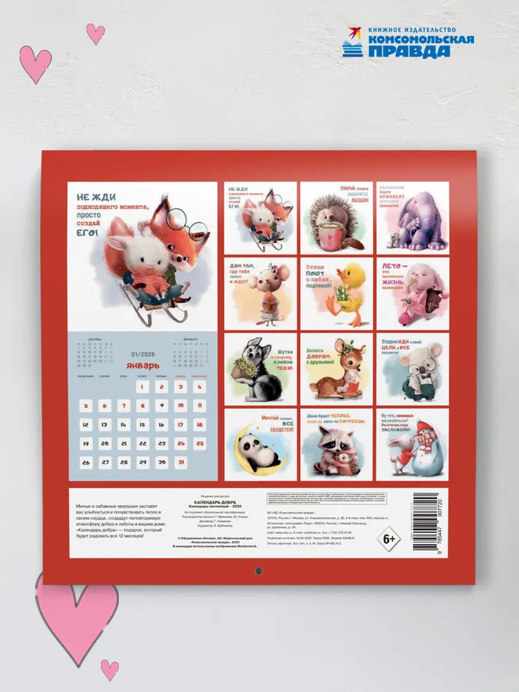 💳 Оплатить за товар можно при получении 🇰🇿 Есть бесплатная доставка по Казахстану 🎁 Копите бонусы с каждой покупки Милые и забавные зверушки заставят вас улыбнуться и почувствовать тепло в своем сердце, создадут неповторимую атмосферу добра и заботы в вашем доме. «Календарь добра» — подарок, который будет радовать все 12 месяцев! Стильный настенный календарь — отличная идея для подарка себе, маме, папе, бабушке, дедушке, другу, коллеге, брату. Красивый перекидной календарь станет украшением интерьера дома, гостиной, спальни, кухни или дачи. Отличный подарок на Новый год. |