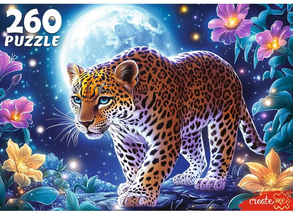 В ночной тишине рождается волшебство — кусочек за кусочком проявляется величественный леопард, освещённый мягким лунным светом. Каждая деталь — как звёздная искра, что складывается в узор загадочной силы и спокойствия. Пазл зовёт остановиться, вдохнуть глубже и позволить себе немного медитации в мире форм и оттенков. Когда картина завершена, остаётся ощущение гармонии — будто сама Луна улыбнулась тебе сквозь серебристый дым облаков.