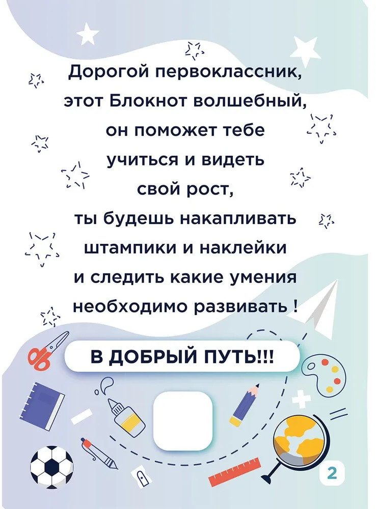 Блокнот достижений первоклассника. Автор Е.П. Тихонова. Этот блокнот — волшебный. Он поможет первокласснику учиться и видеть свой рост в обучении и развитии. Младший школьник будет накапливать штампики и наклейки за активности в блокноте и следить самостоятельно, какие умения уже есть, а какие нужно развивать. Штампов в комплекте нет. Они приобретаются отдельно. Блокнот достижений первоклассника создан автором как мини-портфолио для повышения уровня мотивации первоклассников. Родители смогут оценить, как поработал ребенок в школе. |