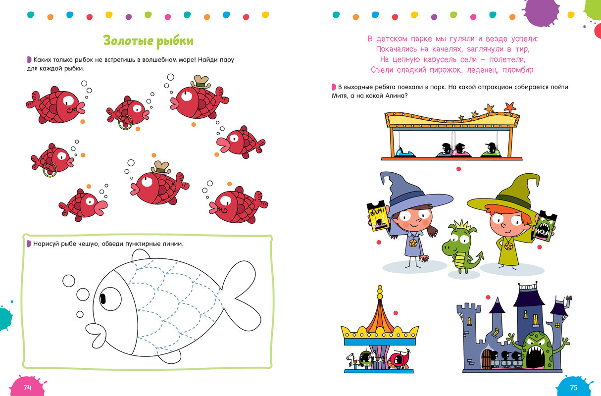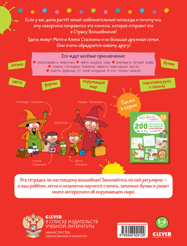 260 весёлых заданий на каждый день. 3-6 летВ данный момент этот товар отсутствует в продаже. Возможно, у нас найдется аналогичный или похожий товар здесь. Это даже не тетрадка. Это книга, с которой ребенку не захочется расставаться. Ведь здесь милые персонажи: целое семейство Сказкиных, а также их друзья — Вреднюкина, Пусечкина, Великан и дракончик. Все они будут играть с ребенком, давать ему задания.Алина Сказкина потеряла носки, помоги ей найти пару, а заодно и туфли — тоже два одинаковых. Колдунья Клара Вреднюкина заколдовала животных, и они поменялись хвостами. Наведи порядок и верни все на свои места! В книгу вошли 260 игр и заданий, полностью соответствующих программе детского сада младшей, средней и старшей групп. |