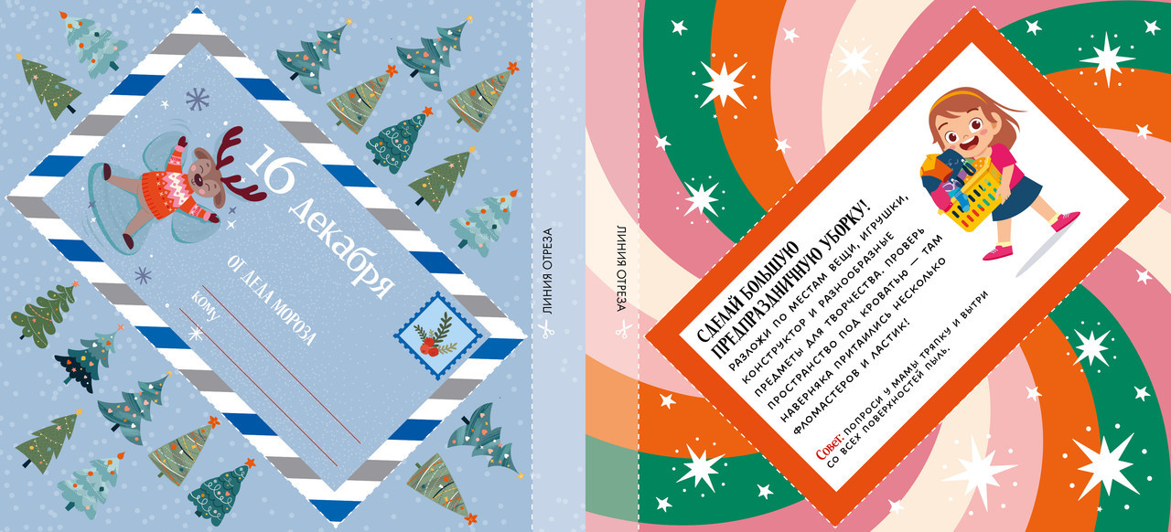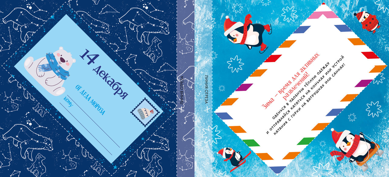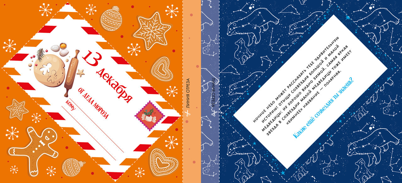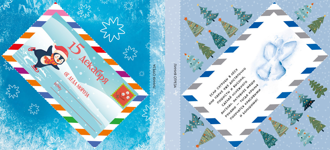 Каждое письмо — новое задание. Взрослым необходимо только отрезать нужную страничку, сложить по линиям сгиба, заклеить наклейкой и спрятать секретное послание под подушку. В декабре ребенку будет некогда скучать: он смастерит простую кормушку для птиц из апельсина, украсит дом, приготовит имбирное печенье (любимое лакомство Деда Мороза), сделает елочные украшения и выполнит еще много заданий. Все письма созданы так, чтобы не только развлекать малышей, но и способствовать развитию логики, внимания, памяти и мелкой моторики.