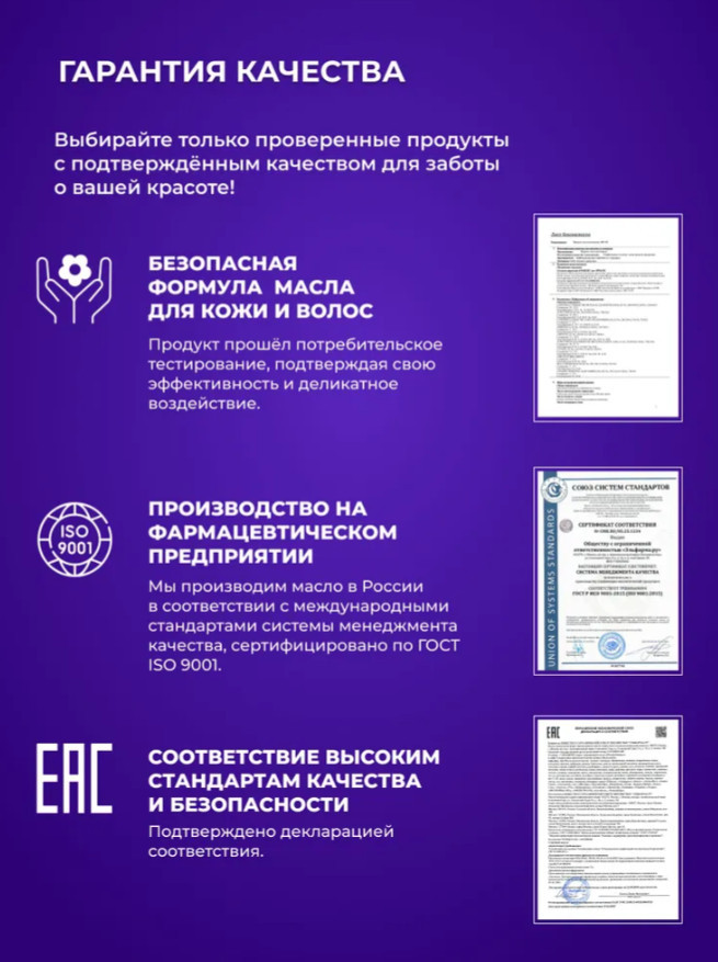 Меры предосторожности: возможна индивидуальная непереносимость компонентов. Перед применением проверьте масло на внутреннем сгибе локтя.