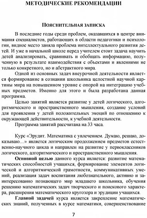 Серия: Учение с увлечением Важнейшей задачей современной системы образования является формирование совокупности универсальных учебных действий, и внеурочная деятельность, будучи составной частью учебно-воспитательного процесса в школе, предоставляет огромные возможности для всестороннего развития личности младшего школьника. Особое внимание при этом уделяется интеллектуальному развитию обучающихся. В данном пособии представлена программа для внеурочной деятельности «Эрудит» по математике для 1 класса. Программа составлена в соответствии с требованиями ФГОС НОО и содержит подробную пояснительную записку (с указанием целей, задач курса, планируемых результатов освоения курса обучающимися), развернутое календарно-тематическое планирование. В книге также даны подробные разработки занятий, оформленные в виде технологических карт. Данное методическое пособие выпускается в комплекте с рабочей тетрадью для ученика. |