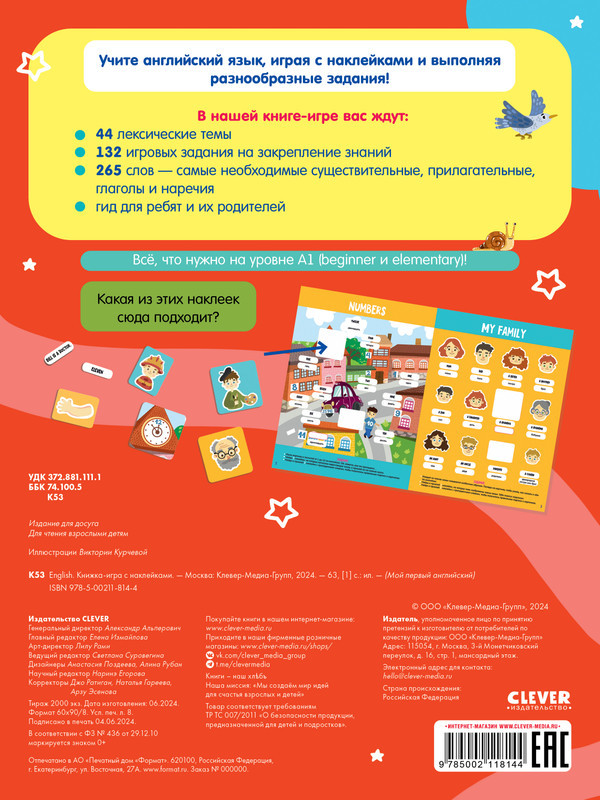 💳 Оплатить за товар можно при получении 🇰🇿 Есть бесплатная доставка по Казахстану 🎁 Копите бонусы с каждой покупки Серия: Мой первый английский 265 новых слов, 44 лексические темы, грамматика в доступной форме, игровые задания и много-много наклеек — все это сделает изучение английского языка обучением-развлечением и очень понравится ученикам начальных классов, школьникам 7, 8, 9 лет. Да и дошкольникам 5, 6 лет тоже будет интересно учить английский алфавит, выполнять интересные обучающие задания и играть с наклейками. Вы будете листать страницы и переходить от одной темы к другой: члены семьи, профессии, игрушки, животные, эмоции. Читайте слова и просите ребенка повторять за вами. А потом пусть маленький ученик сам назовет все предметы, что запомнил. |