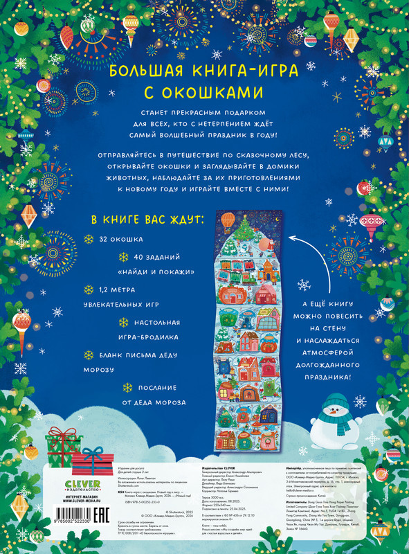 Книжка с окошками «Новый год в лесу» — это целый мир новогодних игр и волшебное путешествие по сказочному лесу. На разворотах Clever книги 1,2 метра игр, 32 окошка, 40 заданий «найди и покажи» и настольная игра-бродилка для всей семьи. А еще письмо от Деда Мороза и бланк для письма Деду Морозу. Книгу можно разложить и повесить на стену, как плакат. |