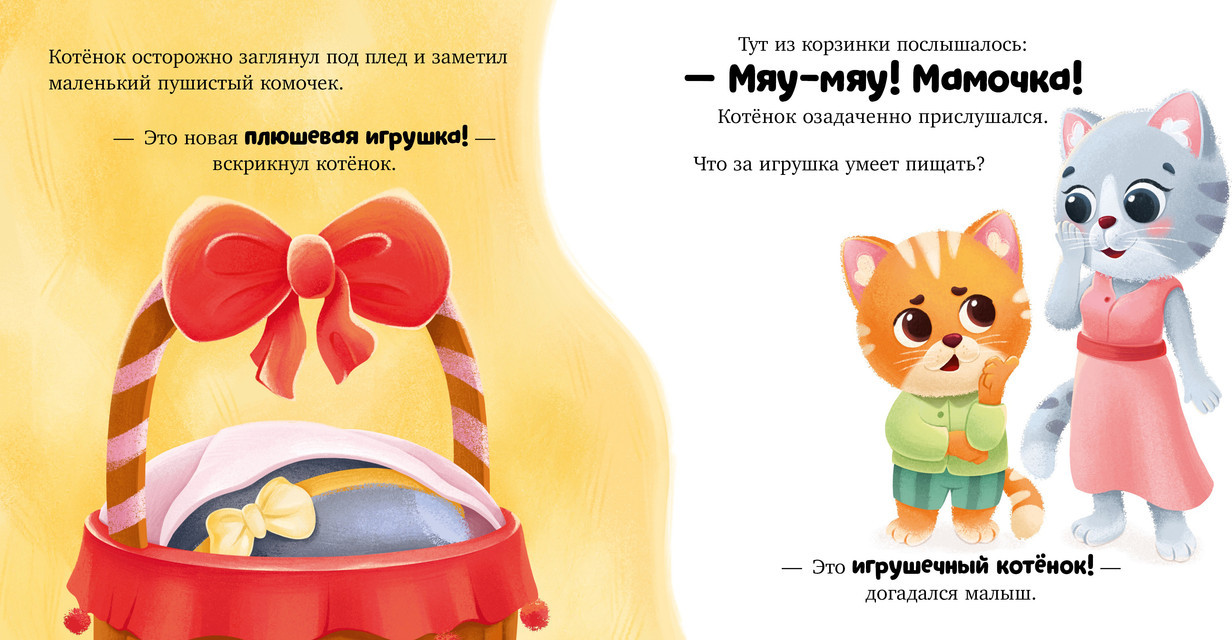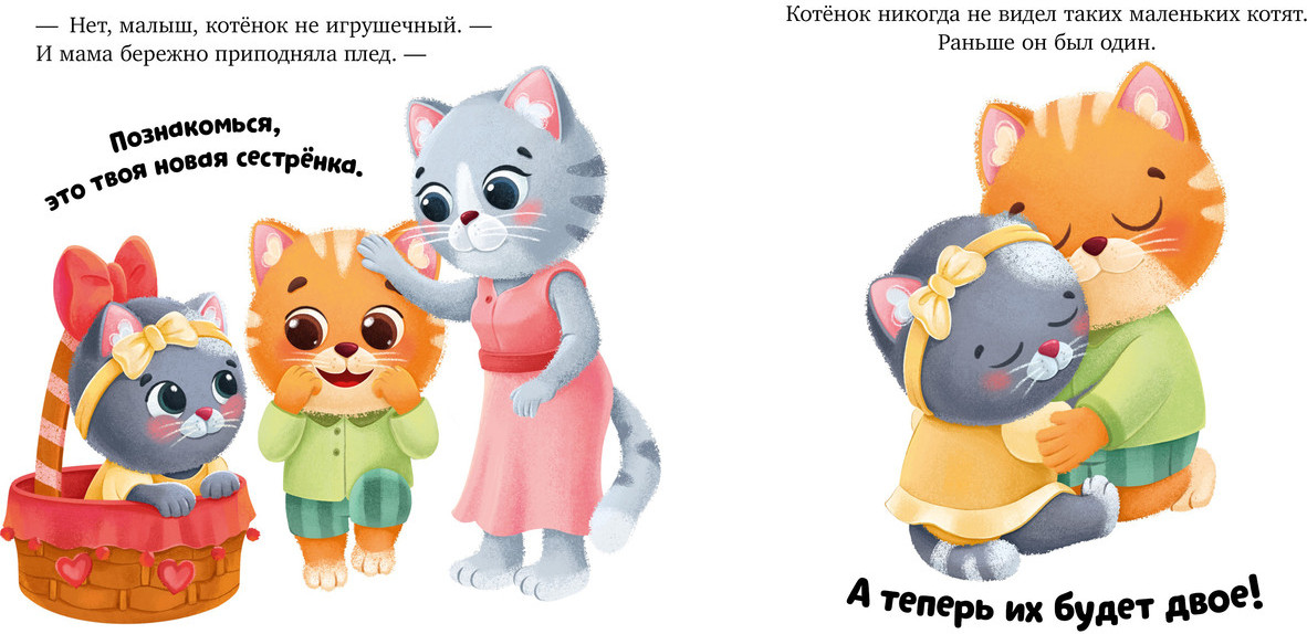 💳 Оплатить за товар можно при получении 🇰🇿 Есть бесплатная доставка по Казахстану 🎁 Копите бонусы с каждой покупки Мама принесла котенку красивую корзинку. Что же внутри? Это вкусный завтрак? Или новая игрушка? Сюрприз от мамы оказался еще интереснее! Эта сказка покажет ребенку, как здорово, когда у тебя появляется братик или сестренка. Вдвоем играть гораздо веселее, а для мамы оба ребенка одинаково любимы. В конце этой доброй clever книги малышей ждет задание: нужно помочь котятам добраться по лабиринту до молока. Эта прочная книга-картонка с плотными страницами и закругленными углами — прекрасный подарок на Новый год ребенку. |
