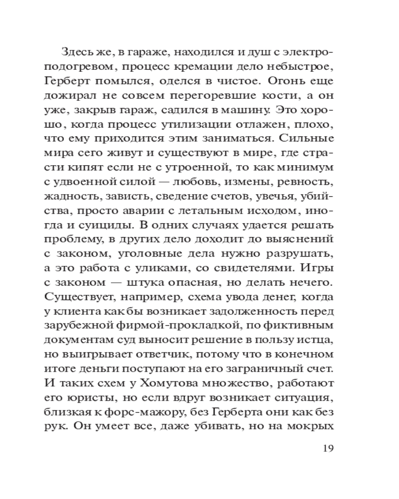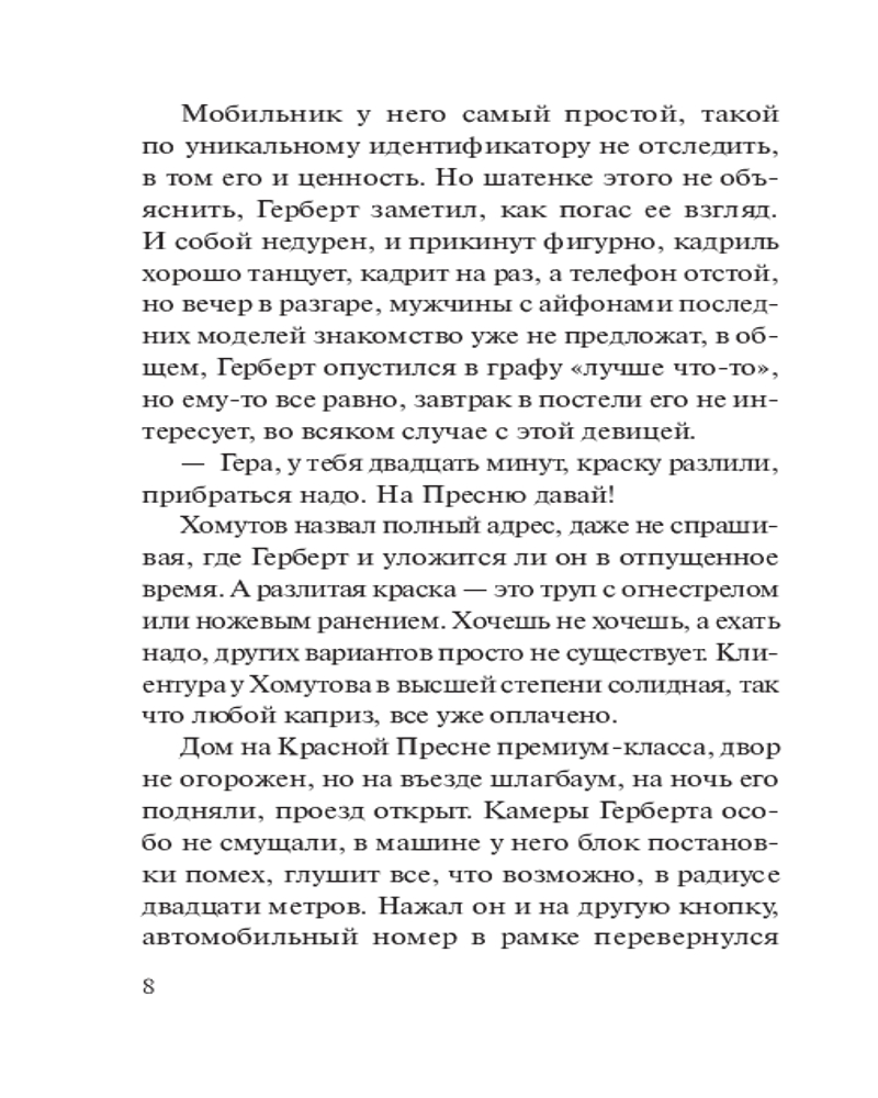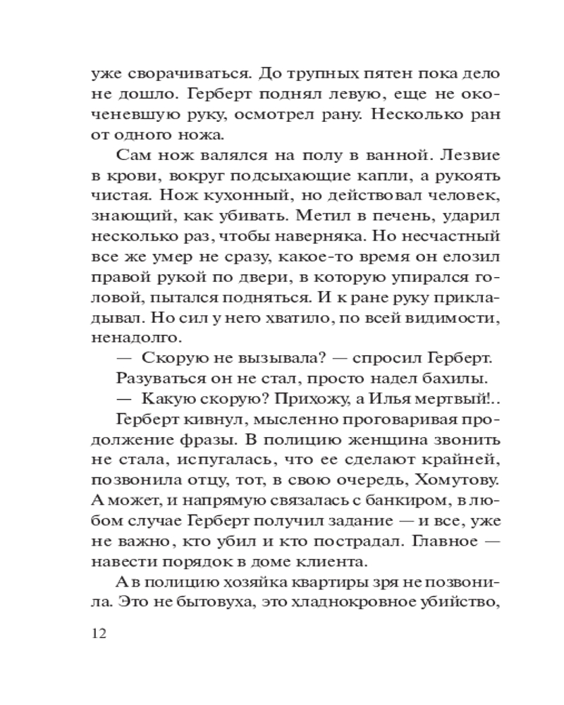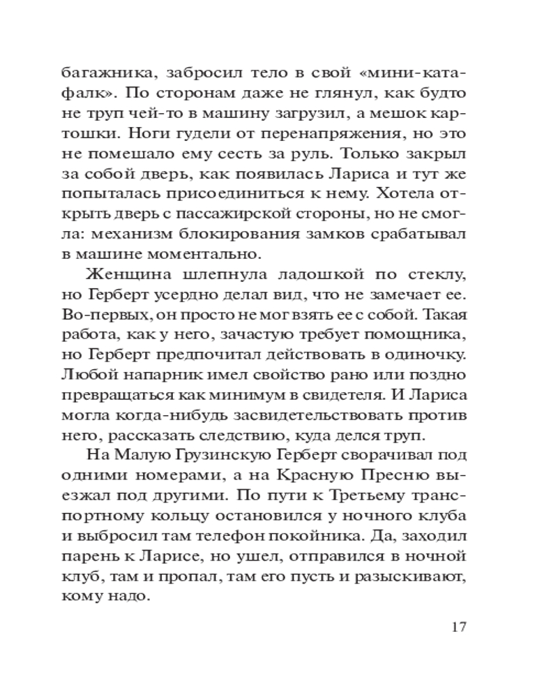 💳 Оплатить за товар можно при получении 🇰🇿 Есть бесплатная доставка по Казахстану 🎁 Копите бонусы с каждой покупки Серия: Колычев. Лучшая криминальная драма (обложка) Герберт Каманин — профессиональный чистильщик. В криминальной среде его задача — подтирать «разлитую краску», то есть ликвидировать следы совершенного преступления. Вот и на этот раз заказчик, большой человек в банковском бизнесе, приказал Герберту убрать труп убитого любовника крупной чиновницы Ларисы. Каманин спешит выполнить приказание босса, не подозревая, что случайное знакомство с коварной и любвеобильной Ларисой в скором времени обернется для него серьезными испытаниями... |