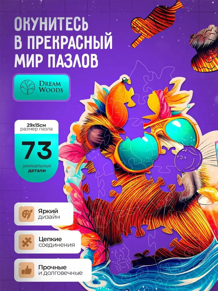 Dream Woods Пазл деревянный «Капибара на чиле»+132