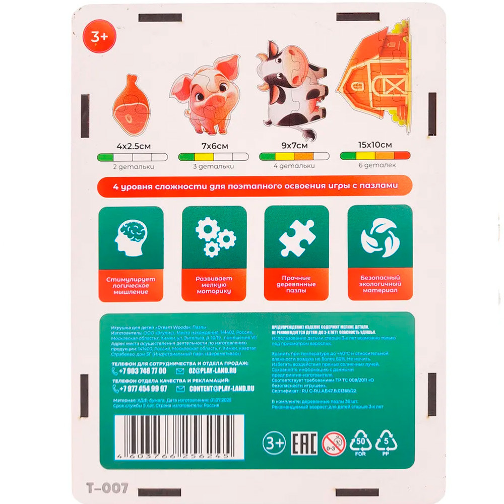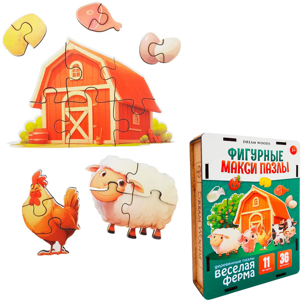Dream Woods Пазл деревянный 11 в 1 «Весёлая ферма»+32