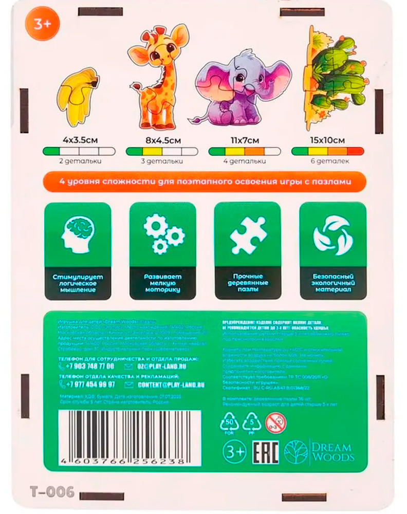 Dream Woods Пазл деревянный 11 в 1 «Фауна Африки»+32