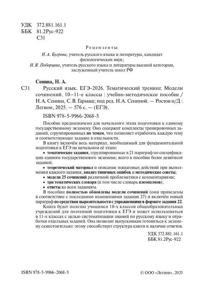 Русский язык. ЕГЭ-2026. Тематический тренингНаталья Аркадьевна Сенина, Светлана Васильевна Гармаш новинка