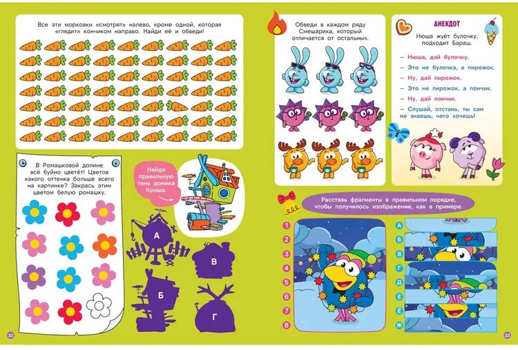 💳 Оплатить за товар можно при получении 🇰🇿 Есть бесплатная доставка по Казахстану 🎁 Копите бонусы с каждой покупки Серия: 1001 и 1 головоломка Развивающая книжка «1000 и 1 головоломка» — лабиринты, найди отличия, найди лишнее, продолжи ряд, чайнворды, кроссворды, задания на счет, судоку, расшифруй фразу, найди на картинке спрятанные элементы и многие другие. Формат А4, мягкая обложка, 80 страниц, цветные иллюстрации. Разнообразные задания помогут ребёнку не только весело провести время, но и развить логическое мышление, память, внимание и творческое воображение. Наша книга — отличный тренажёр для развития мышления, внимания, памяти и мелкой моторики. Решая задания, ребенок тренирует память, развивает фантазию и пространственное мышление, внимательность к деталям, отрабатывает счет и подготавливает руку к письму. Книга для самостоятельного чтения, для досуга, для всей семьи. |